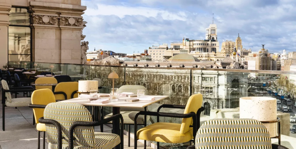 En lo más alto del Palacio de Cibeles, uno de los edificios más emblemáticos de la capital, se encuentra Cornamusa, un restaurante que ha sabido convertir la altura en una experiencia gastronómica sofisticada. Desde su ubicación privilegiada, el espacio ofrece una panorámica única de Madrid que, desde el primer momento, marca el carácter excepcional de la propuesta.