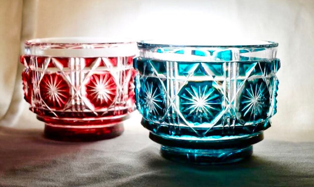 Dentro de esta evolución, el Edo Kiriko, desarrollado durante el periodo Edo, se consolidó como una de las técnicas más refinadas del vidrio japonés. Mediante delicados cortes geométricos realizados a mano, los artesanos crean superficies que refractan la luz con una elegancia casi hipnótica. Cada pieza exige horas de trabajo minucioso, donde el control absoluto y la concentración se convierten, precisamente, en la máxima expresión del lujo.