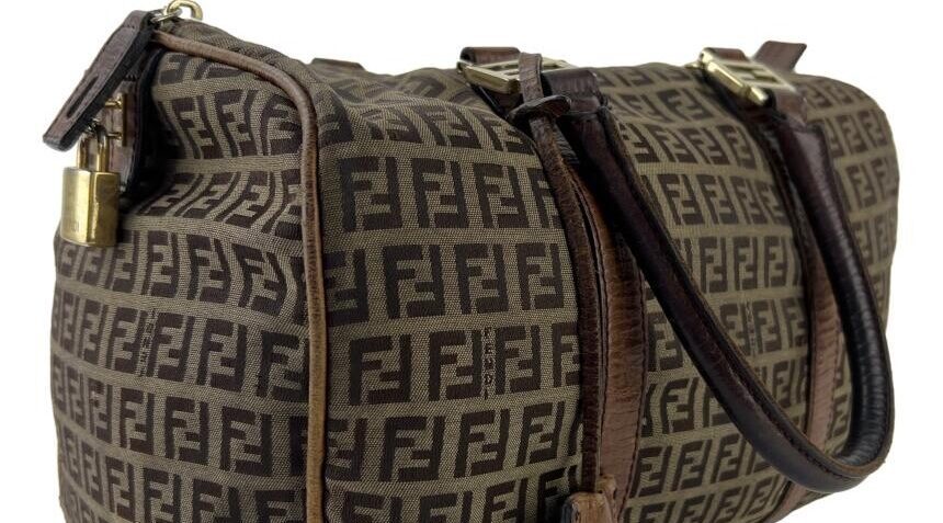 Desde el primer vistazo, la bolsa revela la identidad inconfundible de Fendi. Su diseño rinde homenaje al icónico monograma FF, concebido por Karl Lagerfeld en 1965. Este patrón, símbolo de estatus y elegancia, se despliega sobre un tejido marrón que combina sobriedad y presencia. Los acabados en piel de becerro, meticulosamente trabajados, aportan textura, durabilidad y una sensación táctil incomparable.