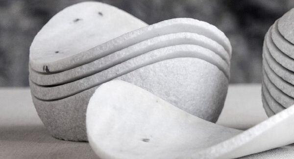 A primera vista, la vajilla de Hartea parece una colección escultórica más propia de una galería que de una mesa. Sin embargo, detrás de cada pieza hay un proceso artesanal que transforma bloques de mármol, arenisca o basalto en objetos que armonizan diseño, peso y presencia.