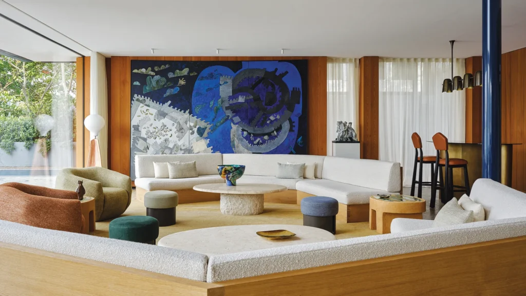 En el interior, la vivienda responde a la filosofía habitual del diseñador: espacios pensados para ser vividos, donde la elegancia nunca eclipsa la comodidad. Los materiales naturales, las texturas suaves y una paleta cromática serena generan una atmósfera de calma que contrasta con la energía vibrante de la ciudad.