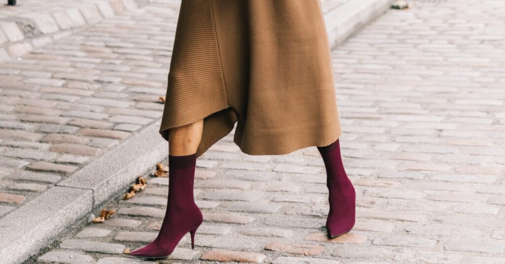 Los colores del otoño se mueven entre la profundidad y la sobriedad: burdeos, esmeralda, arena, chocolate, petróleo. Paletas que dialogan con botas negras o marrones, pero también con tonos metálicos suaves y acabados de lujo discreto.