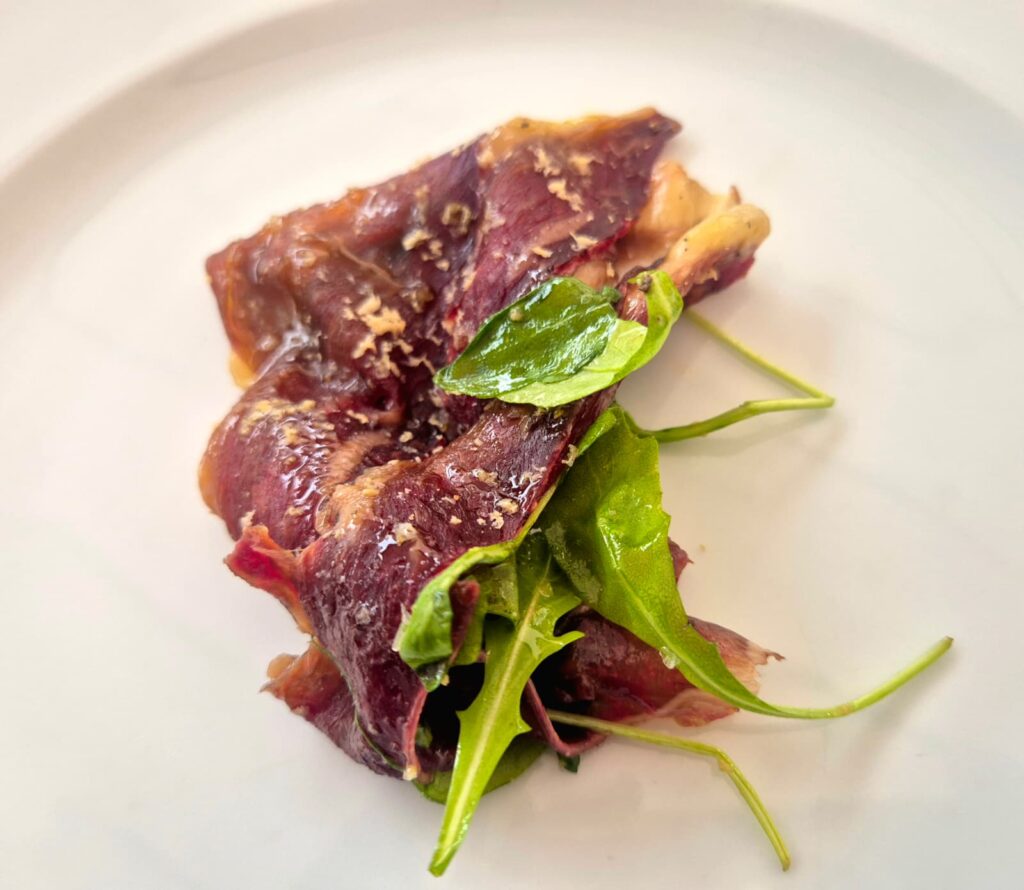 Esa confianza se traduce también en la cocina, que no necesita disfraces ni técnicas invasivas para brillar. La propuesta culinaria de Materia Prima se apoya en la temporalidad y en el respeto absoluto al sabor original del producto. Las elaboraciones son sencillas, precisas, pensadas para acompañar y no para eclipsar. En los entrantes, las verduras y hortalizas tienen un peso específico: espárragos cuando toca, alcachofas en su punto, tomates que saben a tomate. Producto de verdad, tratado con mimo.
