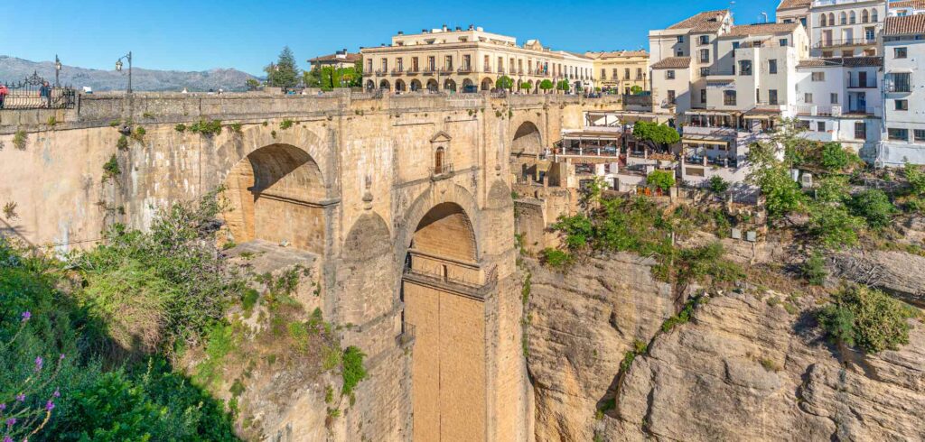 El primer encuentro con Ronda es, inevitablemente, el Puente Nuevo. Más que un símbolo, es una declaración de intenciones. Esta obra colosal del siglo XVIII se alza sobre el Tajo del río Guadalevín como un mirador suspendido entre cielo y piedra. Desde aquí, la ciudad se muestra en toda su magnitud: dramática, serena y profundamente estética. Al amanecer o al caer la tarde, la luz convierte la roca en oro y el paisaje adquiere una dimensión casi pictórica.