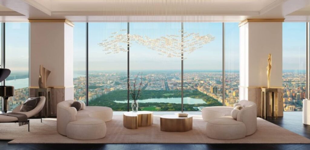 Por otro lado, el diseño interior de la vivienda ha sido concebido para equilibrar el valor histórico del inmueble con las exigencias del lujo contemporáneo. La residencia dispone de techos altos, grandes ventanales curvos adaptados a la forma triangular del edificio y vistas a la Quinta Avenida.